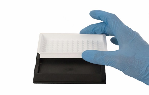96 or 384 individual pyramidal indentations allow for maximum liquid recovery when using VIAFLO 96, VIAFLO 384 or other multiwell pipetting systems.
