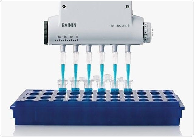 The XLS adjustable spacer pipette’s six or eight nozzles can be used to efficiently transfer samples among formats of different sizes with remarkable comfort. Its ease, speed, and accuracy make it perfect for tissue culture, genomic, proteomic, and cell culture applications. For example, users can aspirate samples from micro-centrifuge tubes, turn the spacing knob, and dispense into a 24, 48, or 96-well plate.