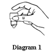 4. Hold the bottle upside down in one hand between your thumb and middle finger (see Diagram 1).