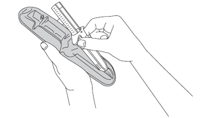 4. Tear open the pouch along the dotted line and take out the pre-filled syringe. The content of the pre-filled syringe is semi-solid with a gel-like appearance, and