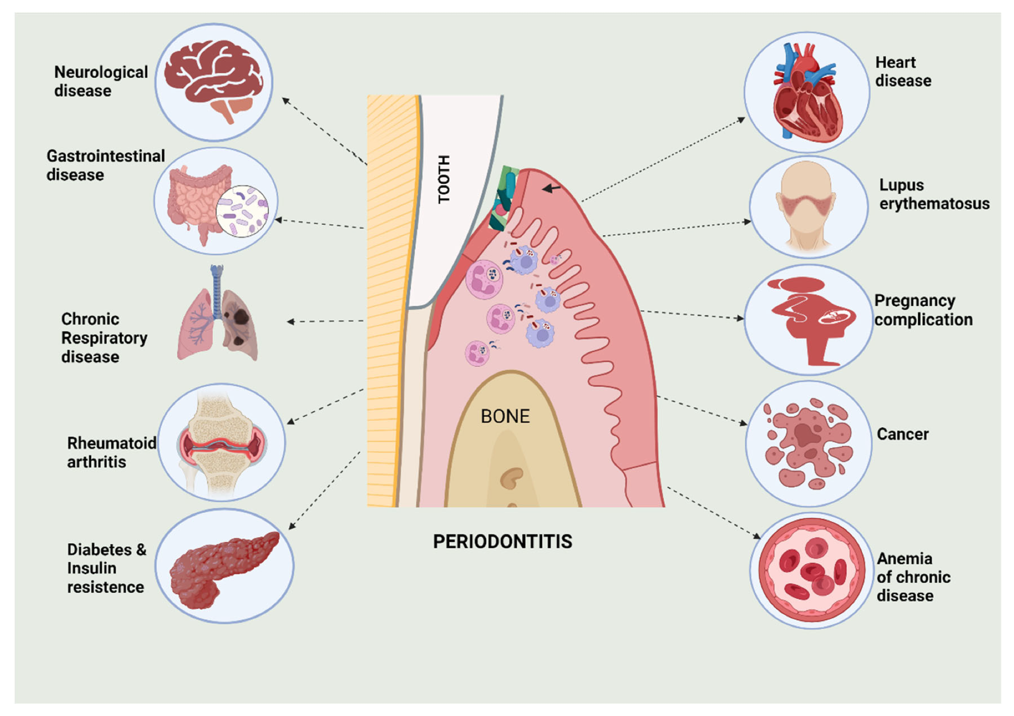 2. Bhuyan, R., et al. (2022). Periodontitis and Its Inflammatory Changes Linked to Various Systemic Diseases: A Review. Biomedicines, 10(10). DOI: 10.3390/biomedicines10102659. https://www.mdpi.com/2227-9059/10/10/2659