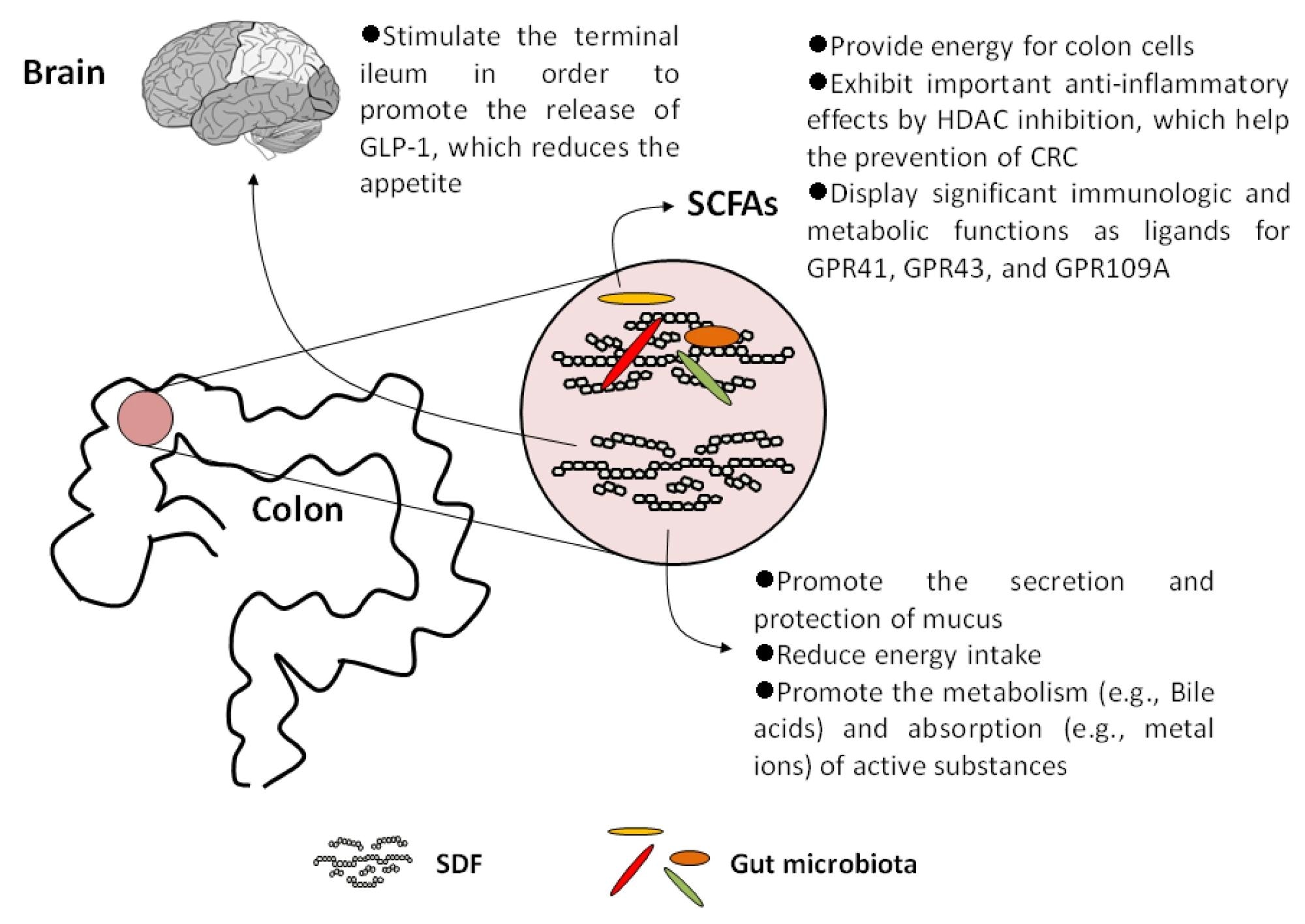 Summary of identified physiological effects of SDF and SCFAs on human health.Summary of identified physiological effects of SDF and SCFAs on human health.1