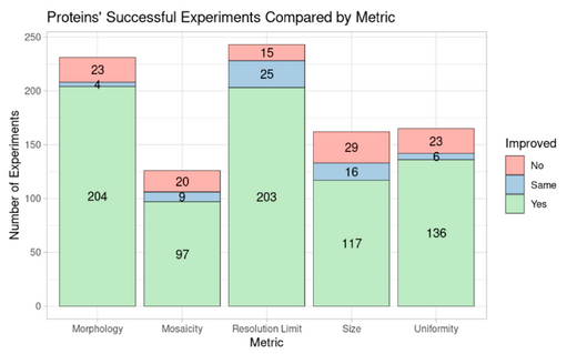 Figure 6. Compared to ground experiments, crystals grown in a microgravity environment continue to show improvement across all metrics evaluated. Image Credit: ELRIG (UK) Ltd.