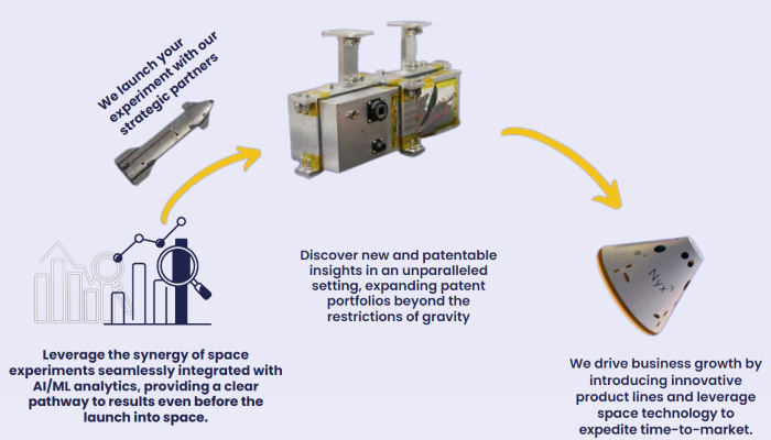 The company leverages the synergy of space experiments; launches experiments with staretegic partners; discovers new and patentable insights; and drives business growth.