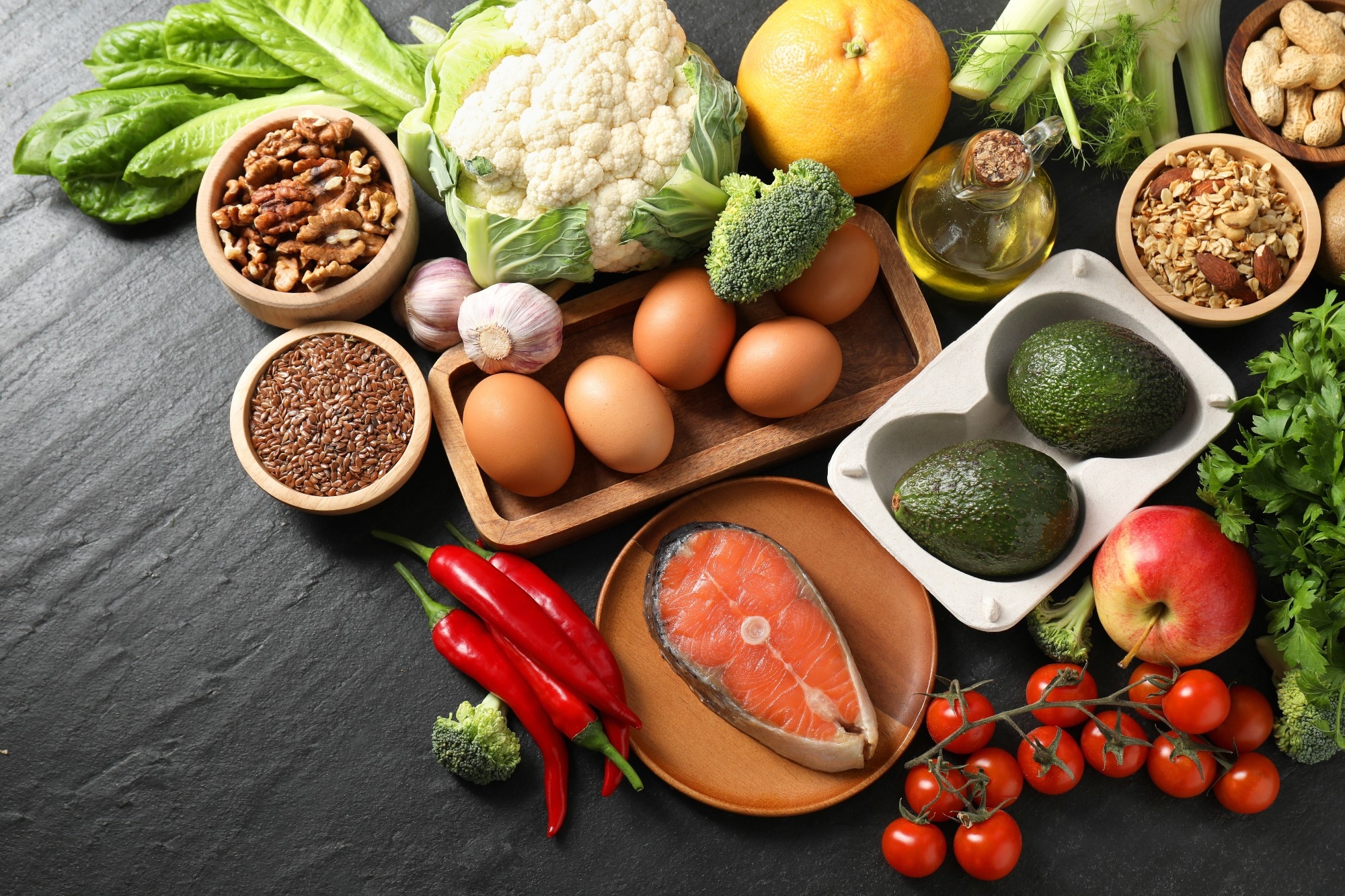 Omega-3 fatty acids, primarily eicosapentaenoic acid and docosahexaenoic acid, are present in fatty fish, flaxseeds, and walnuts. These dietary components reduce inflammation by decreasing leukocyte activity, suppressing the production of inflammatory eicosanoids, and lowering levels of TNF-α and IL-6. Omega-3 fatty acids also produce lipid mediators, such as resolvins and protecting, that promote the resolution of inflammation.