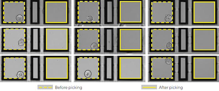 - The CellCelector removed each spheroid from its nanowell and resuspended it in hydrogel.