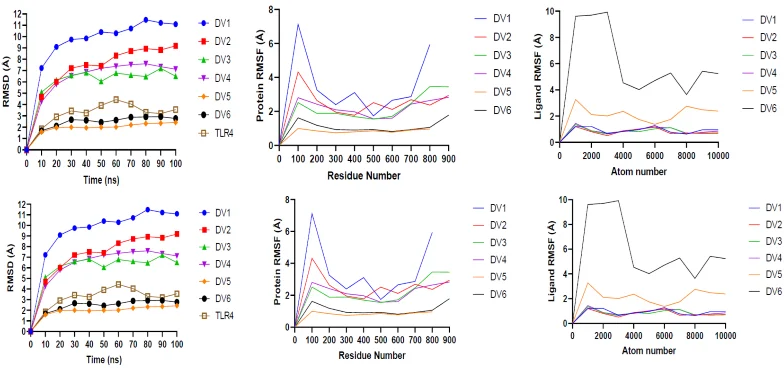 RMSD and RMSF analysis confirmed DV5 as the most stable construct, with strong structural integrity and receptor binding.
