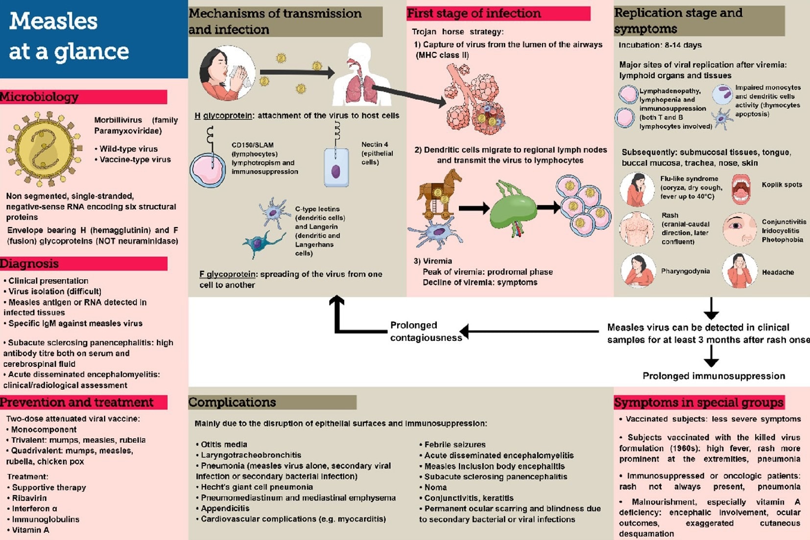 ”Measles at a glance”: microbiology, mechanisms of transmission and infection, symptoms, complications, diagnosis, prevention and treatment.2