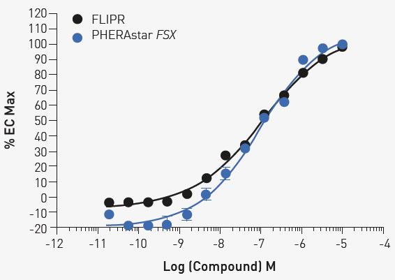 Fig 3. Concentration response under optimized conditions 1000 cells were treated with the indicated concentration of ML297 for 10 minutes. Comparable results are obtained with FLIPR or PHERAstar FSX. Image Credit: Image courtesy of Sivakumar, M et al., in partnership with ELRIG (UK) Ltd.