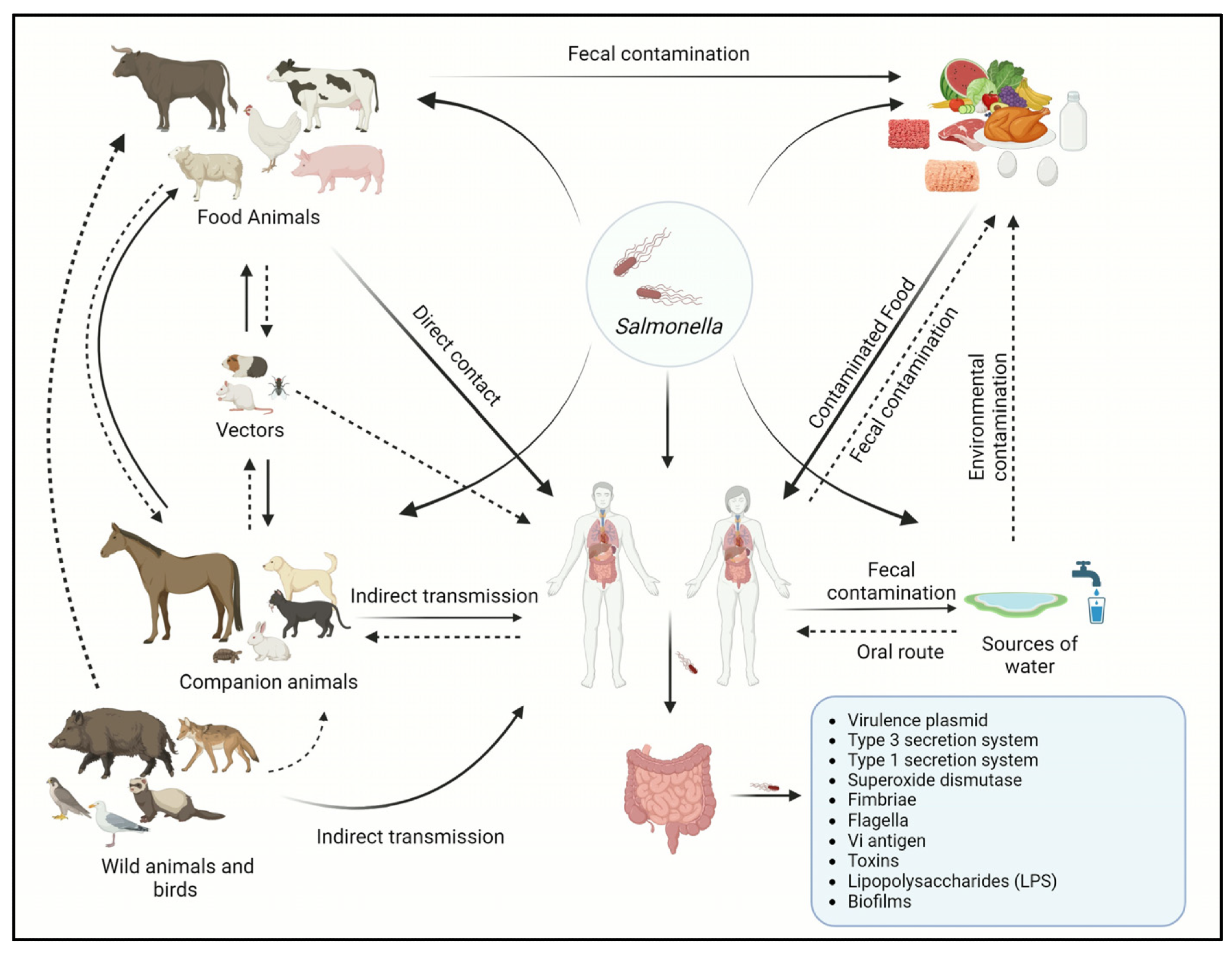Transmission cycle of Salmonella between animals and humans.2Transmission cycle of Salmonella between animals and humans.2
