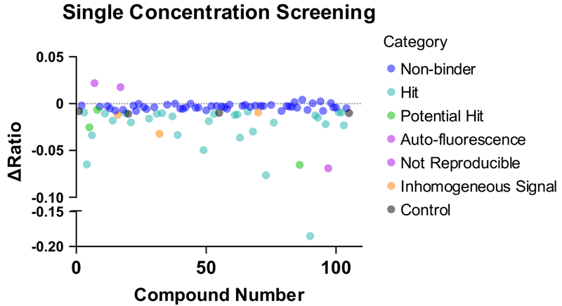 • Almost half of the compounds did not return a significant Δratio and were classified as non-binders.