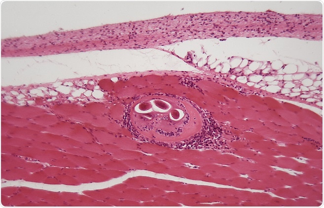 Trichinellosis, a disease caused by a parasitic nematode species of the genus Trichinella, is not only a public health hazard that affects human individuals, but an important economic issue in animal husbandry and food safety. The infection occurs when Trichinella larvae encysted in animal muscle are ingested, which subsequently induces the further development of the parasite.