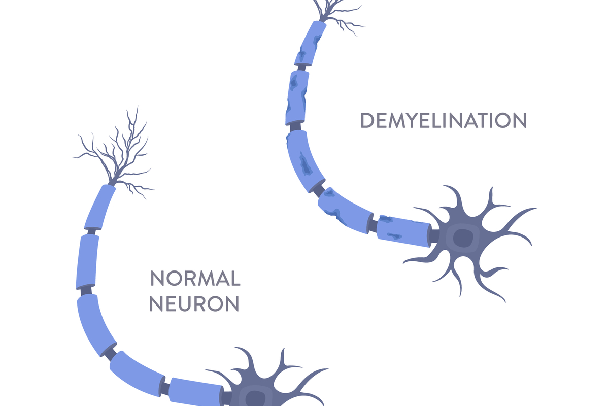 Demyelination refers to the damage and loss of myelin sheaths that previously surrounded nerves. Demyelination may occur due to inflammatory, metabolic or genetic factors. Regardless of the cause, a loss of myelin leads to significant nerve dysfunction and slowed or blocked nerve conduction between the brain and the rest of the body.