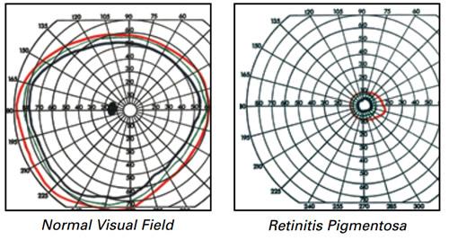 Retinitis pigmentosa (RP) is a disease condition that was first identified and named by Dr. Donders in 1857. Retinitis pigmentosa is a group of related conditions that are inherited, progressive and clinically distinctive and share a similar feature of dystrophy or damage to the photoreceptors of the retina and of the pigment epithelium underneath the photoreceptors.