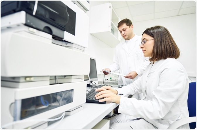 Researchers analyzing liquid chromotography data Credit: Dimitry Kalinovsky/ Shutterstock.com