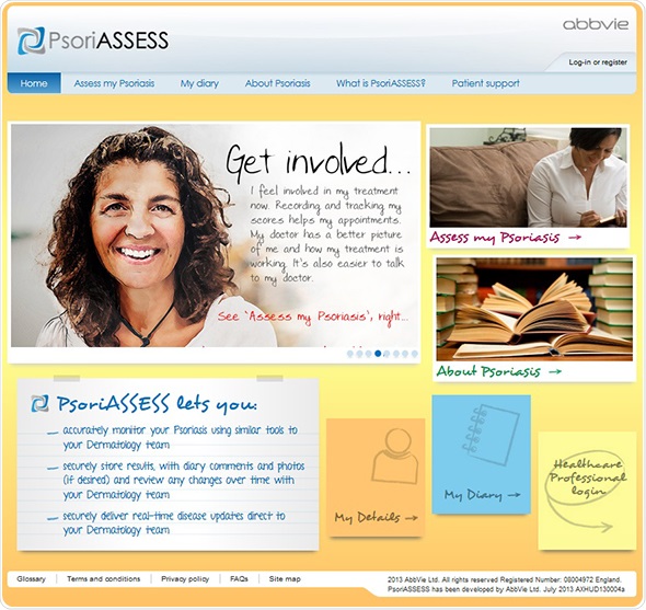 PsoriASSESS is a clinical, integrated psoriasis website for both patients and dermatologists. Its goal is to provide a more objective picture of the condition, both good and bad, over the time between consultations so that the dermatologist can better assess, diagnose and treat a patient’s psoriasis. Through the website, patients can take quick and easy self-completion questionnaires as well as compile a regular diary, complete with pictures of their psoriasis as it fluctuates over time.
