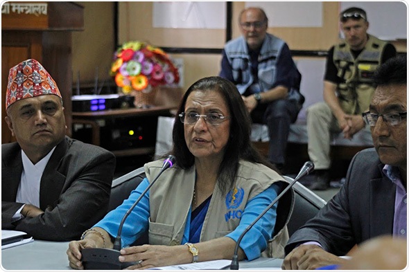 During her visit to Nepal, Dr Khetrapal Singh met with the country’s Minister of Health and Population and other senior government officials, as well as the leadership of the United Nations system in the country. High on her agenda were preparations to prevent disease outbreaks ahead of the oncoming rainy season, WHO’s commitment to support the country’s health system, and to assist its heroic health workers as they recover from the disaster once the emergency phase has passed.