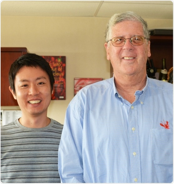 Professor Martin Friedlander (right) and Research Associate Susumu Sakimoto led the work at The Scripps Research Institute with first author Lindsay Keir (not pictured). (Photo by Madeline McCurry-Schmidt.)