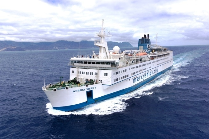 The Africa Mercy hospital ship, which is currently docked in Benin