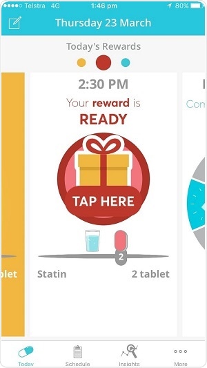 Users have the opportunity to earn movie tickets, gift cards, charity donations and travel vouchers by sticking to their medication. What we are really doing here is using whatever rewards motivate people to stick to their medication.