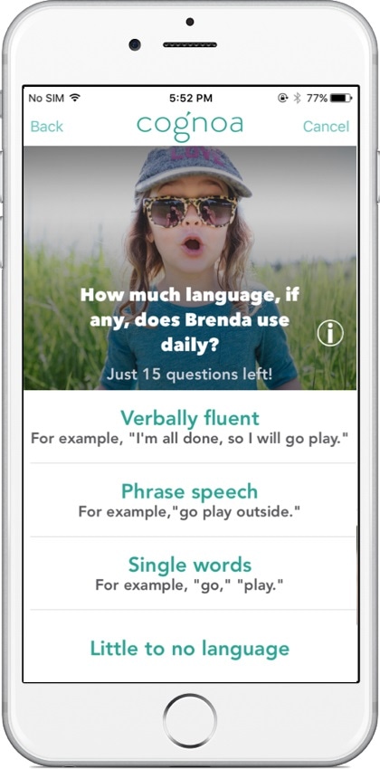 This can significantly reduce the age of diagnosis and in one study, Cognoa correctly identified autism with an average age of 3.08 years old, 13 months sooner than the national average. In analyzing the results from a recent multi-center clinical trial, Cognoa could reduce the number of children that are referred to specialists for autism evaluations by 70%.
