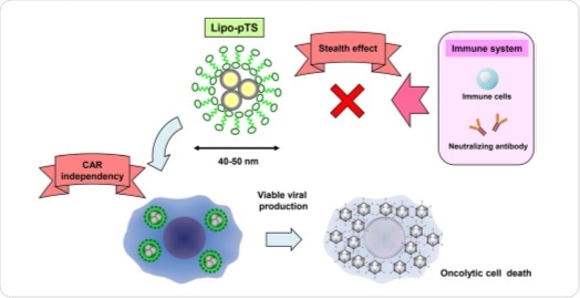 The principle behind oncolytic virotherapy, an emerging cancer treatment strategy, is to introduce viruses in tumors to infect and kill cancer cells. The targeted delivery of oncolytic viruses to a tumor site is, however, a bottleneck in the development of the therapy — normally, non-specific administering of such viruses leads to their neutralization by the immune system. Inspired by the potential of using nanoparticles for drug-delivery, Professor Toshiyoshi Fujiwara and Associate Professor Hiroshi Tazawa, Assistant Professor Shinji Kuroda from Okayama University have now shown that encapsulating the DNA of a particular type of virus in nano-sized vesicles with a lipid-bilayer shell (so-called liposomes) does not trigger the immune system, while still inhibiting tumor growth.
