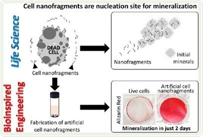The burst of cells forming cartilage is associated with mineralization during the early stages of bone formation, and nanofragments of the cell membranes can act as nucleation sites for amorphous calcium phosphate, as reported in two studies just published in Integrative Biology and ASC Biomaterials Science and Engineering.