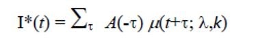 Here μ(t+t; l,k) is the distribution of the incubation period in a Weibull distribution, with the parameters l and k.