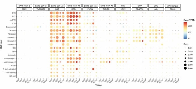 In conclusion, this novel single-cell transcriptomic analysis provides evidence that the placenta and fetus are unlikely to get infected by SARS-CoV-2 since its canonical receptor and protease (ACE2 and TMPRSS2, respectively) are minimally expressed by the human placenta.