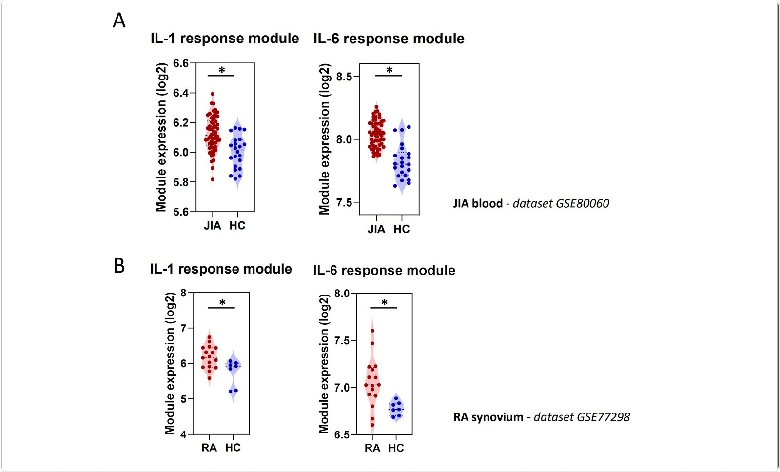 Furthermore, IL-1 and IL-6 response modules may be used to measure cytokine bioactivity after immunomodulation, with drugs that target these cytokines (such as anakinra, tocilizumab, and canakinumab) – permitting, in turn, the correlation between clinical response and cytokine activity levels.