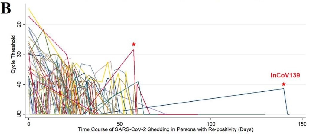 The patient with the most prolonged duration between negative rt-PCR and re-positive was of much interest to the researchers. He was code-named InCoV139, and is aged between 60 and 69. He had a history of severe lung disease emphysema and is on home oxygen support. He also suffering from hypertension. He was hospitalized in early March for severe pneumonia due to COVID-19 disease.
