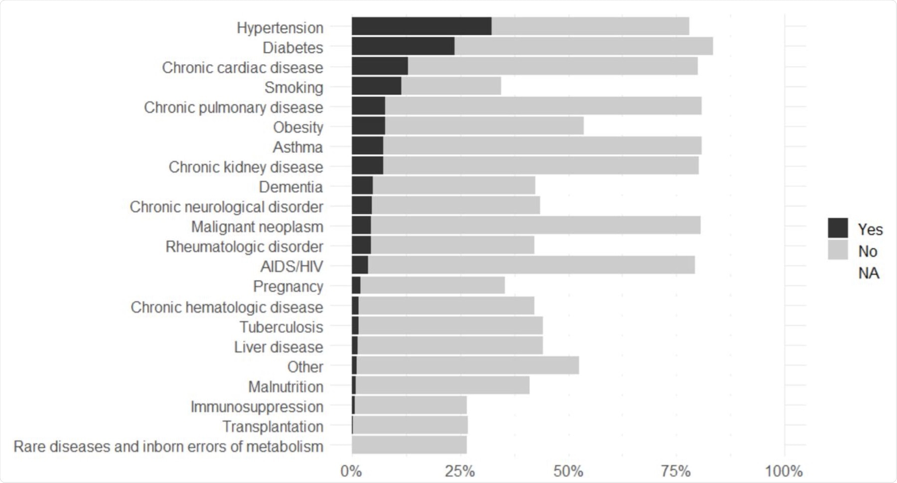 The study found that the presence of five comorbidities was strongly associated with the risk of death. The most prominent risk factor was high blood pressure, diabetes, and chronic heart disease. Other comorbidities that were associated with the risk of death included chronic kidney disease, transplantation, immunosuppression, and chronic pulmonary disease. Pregnancy, on the other hand, was associated with a lower risk of death in patients who were admitted to hospitals.