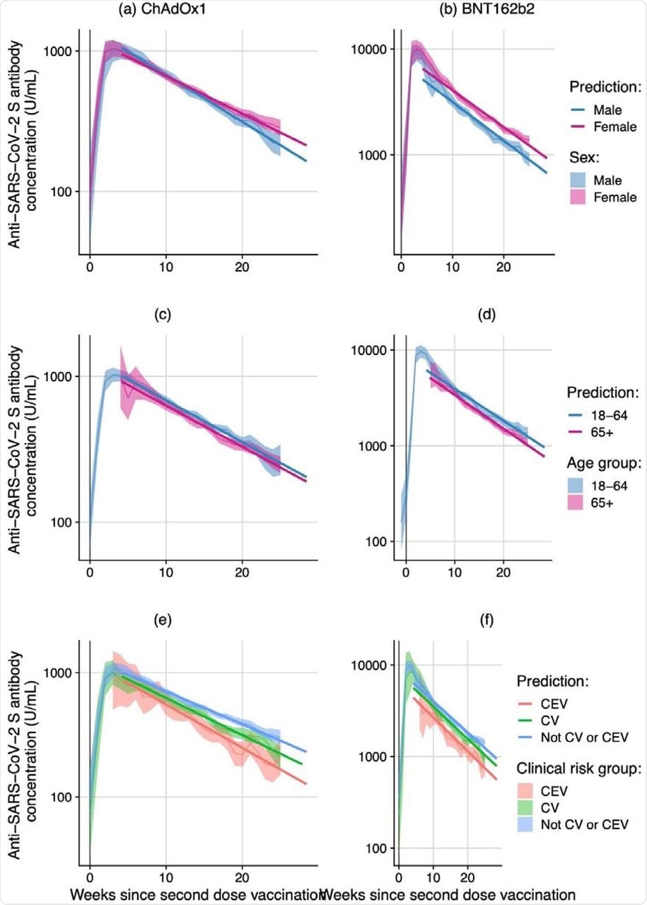 There was no evidence of a difference in the rates of waning by age, sex, or clinical risk groups for BNT162b2 or ChAdOx1 vaccines.