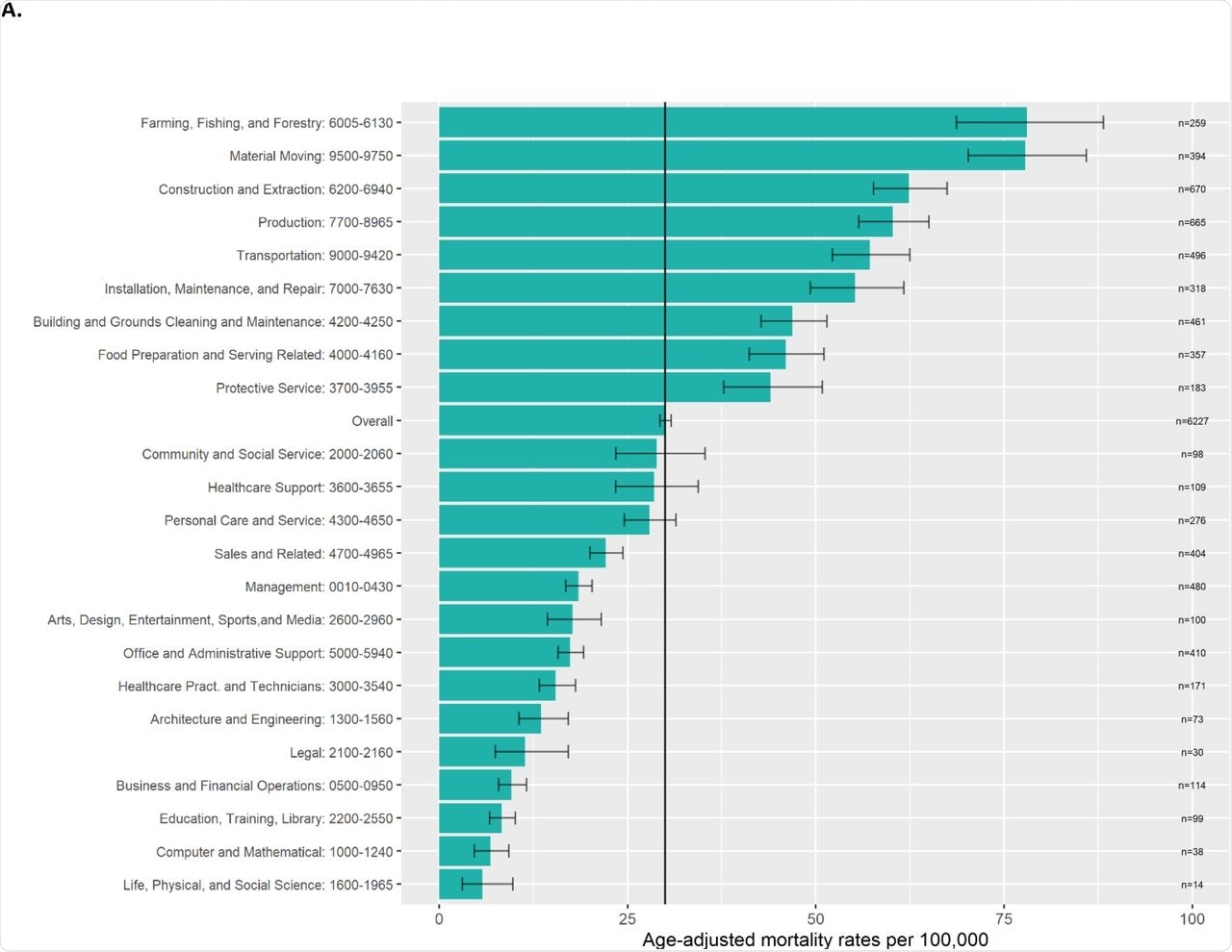 For detailed information of the decedent, the researchers used the U.S. Census Bureau’s 2019 American Community Survey (ACS) Public Use Microdata Sample files for California. They aggregated the deaths at the occupational group level: 1) overall, 2) by sex, and 3) by race/ethnicity to calculate age-adjusted rates.