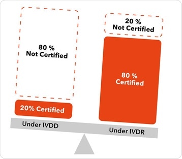 Under the previous regulations, about 80 % of IVD devices were allowed to be self-certified by a manufacturer. Technical documentation was placed on the market under only the oversight of the manufacturer, and a notified body was not required to review that technical documentation in advance of the product going to market.