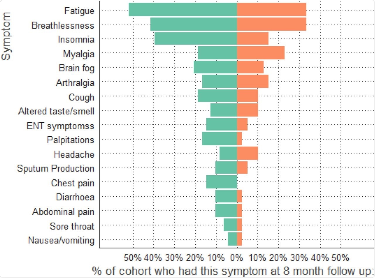 All patients were followed up for eight months after they had recovered from COVID-19 either by phone or in-person visits. The patients were asked to complete a short survey that included questions on their quality of life and a review of ongoing symptoms.