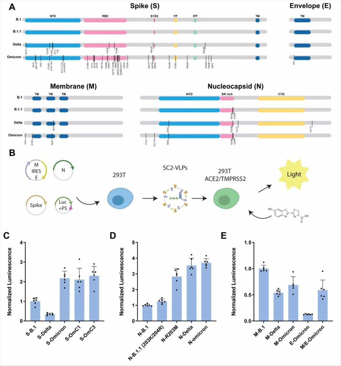 The scientists then compared the effects of N, M, or E viral variants on the infectivity of VLPs generated using B.1 genes. These studies were conducted in response to previous research demonstrating that the N gene had a pronounced influence on infectivity and RNA packaging efficiency.