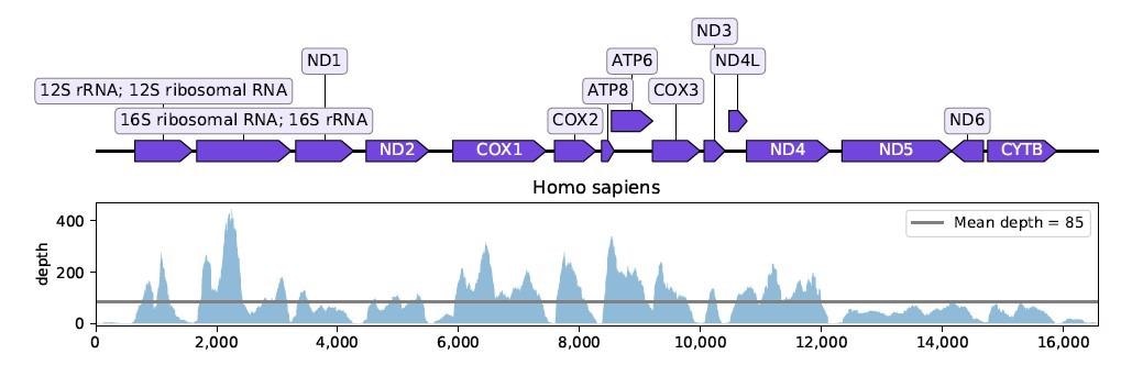 To avoid false or misleading hits, the researchers calculated the percentage of nucleotides covered in the mitochondrial genome and the average number of reads in a nucleotide (average depth) for each species