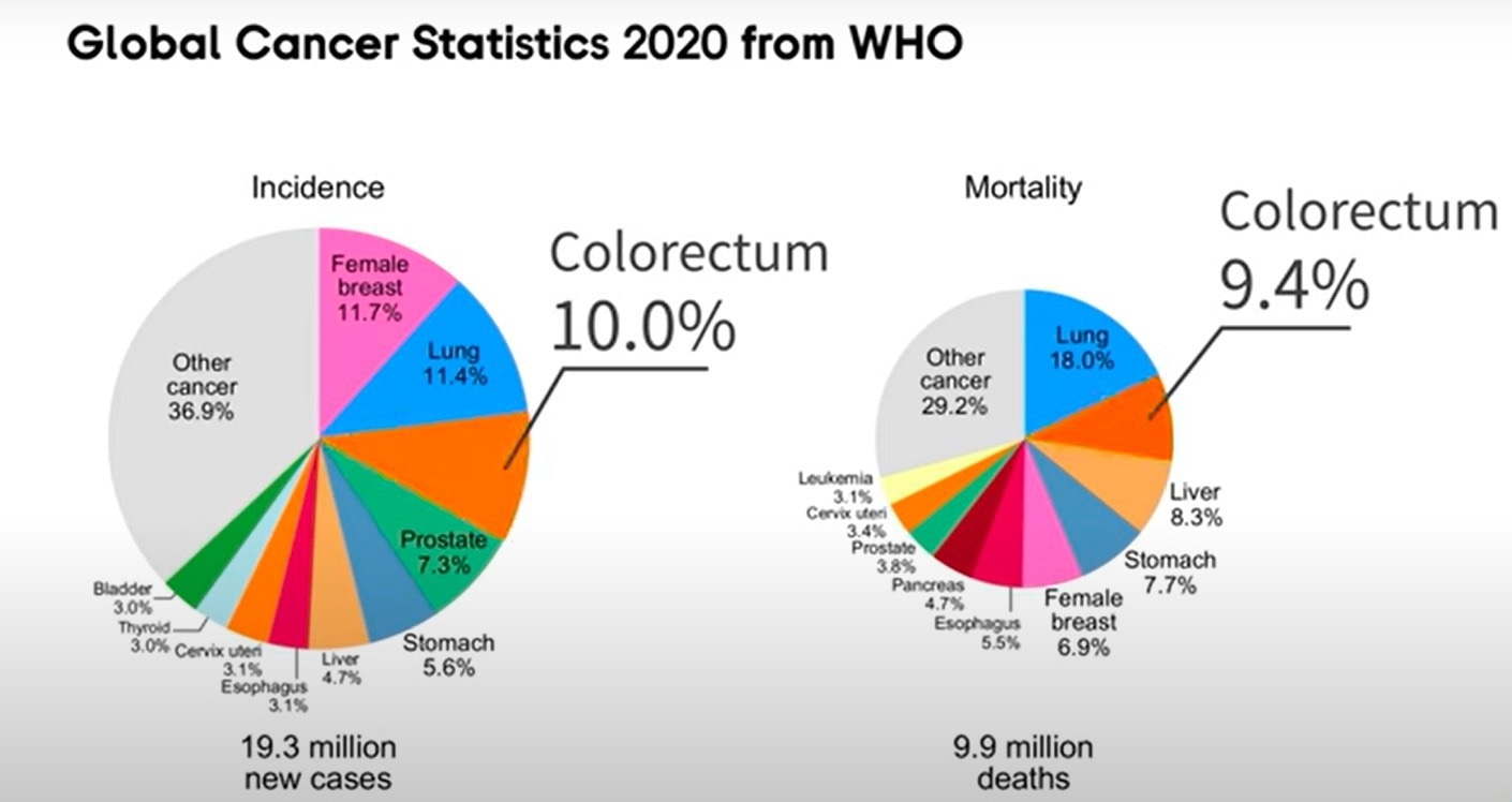 Yantao Li: As the third most common malignancy and the second most deadly cancer, colorectal cancer (CRC) induced an estimated 1.9 million incidence cases and 0.9 million deaths worldwide in 2020. In 2020, CRC accounted for 10% of global cancer incidence and 9.4% of cancer deaths, just lower than lung cancer, which comprises 18% of deaths. The global number of new CRC cases is predicted to reach 3.2 million in 2040, based on the projection of aging, population growth, and human development.