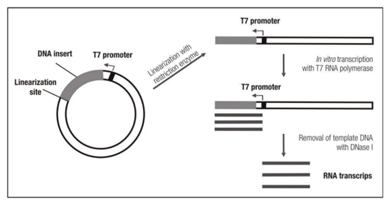 This entails first linearizing the template DNA and then setting up the IVT reaction. This reaction will consist of that template, linearized DNA, dNTPs, and then RNA polymerase. The reaction forms the mRNA construct.