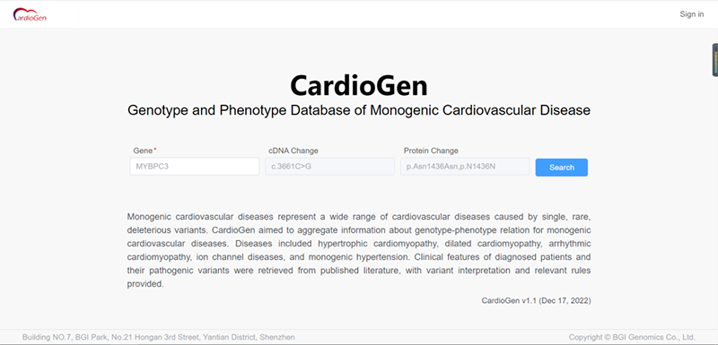 CardioGen comprehensively collects and integrates information on the variant loci of disease-causing genes reported in the global literature and public databases, as well as clinical phenotypes of patients, to facilitate accurate interpretation of the variant loci by clinicians once the genetic test results are available. As this database grows, clinicians can make more accurate clinical interpretations after receiving genetic test results.