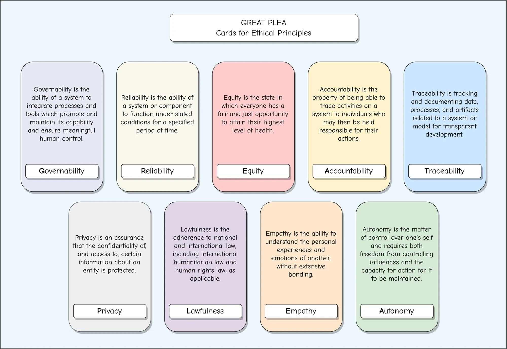 The GREAT PLEA is an abbreviation for Governability, Reliability, Equity, Accountability, and Traceability, all of which are common between military and medical domains. Privacy, Lawfulness, Empathy, and Autonomy are concerns emphasized in the healthcare spectrum and form a novel set of considerations hitherto ignored in medical literature.