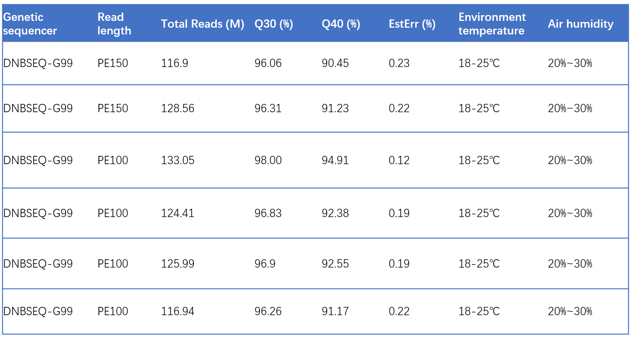 Under the challenging condition of 5°C, which is difficult for sequencers to withstand, the DNBSEQ-E25 successfully operated stably. A single SE100 sequencing run took only 5 hours, with a Q30 value exceeding 90%, a low error rate, and the quality of the output data meeting the requirements for bioinformatics analysis.