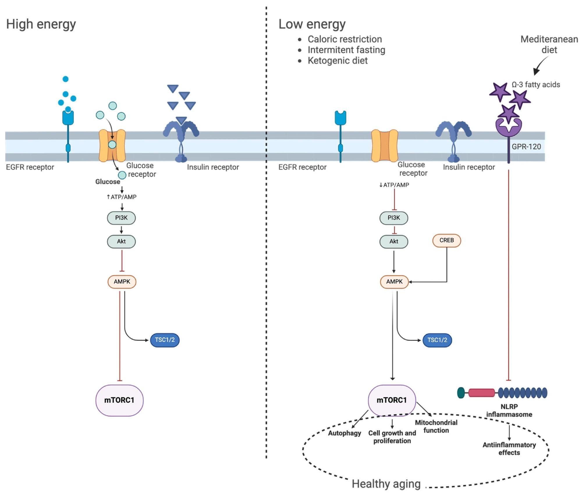 - Surugiu, R., Iancu, M. A., Vintilescu, Ș. B., et al. (2024). Molecular Mechanisms of Healthy Aging: The Role of Caloric Restriction, Intermittent Fasting, Mediterranean Diet, and Ketogenic Diet—A Scoping Review. Nutrients. doi:10.3390/nu16172878