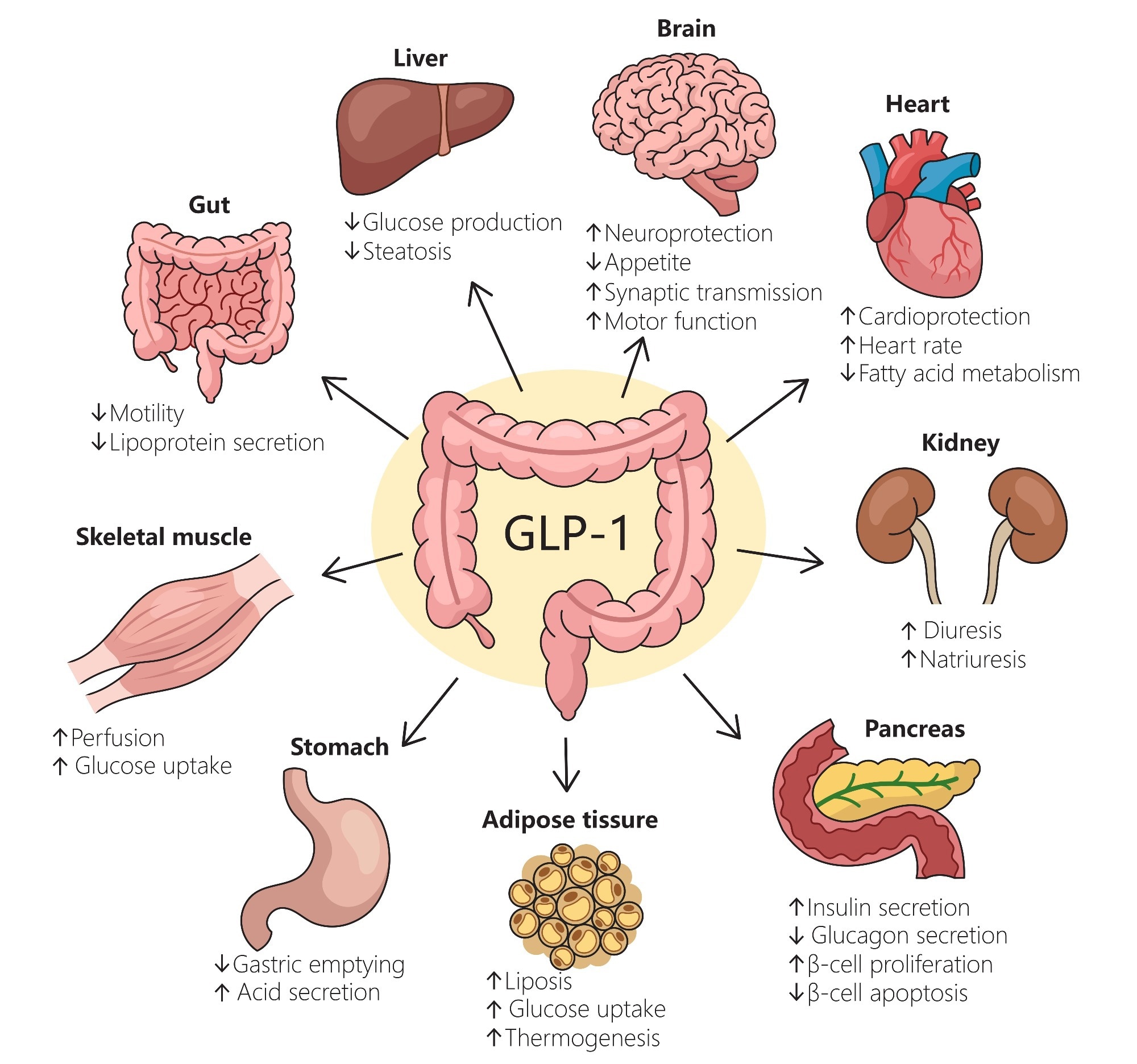 Surprisingly, a growing number of clinical studies demonstrate that these drugs (and other GLP-1 RAs) may have benefits that extend far beyond their original purpose, with their effects spanning the heart, kidneys, liver, and more.
