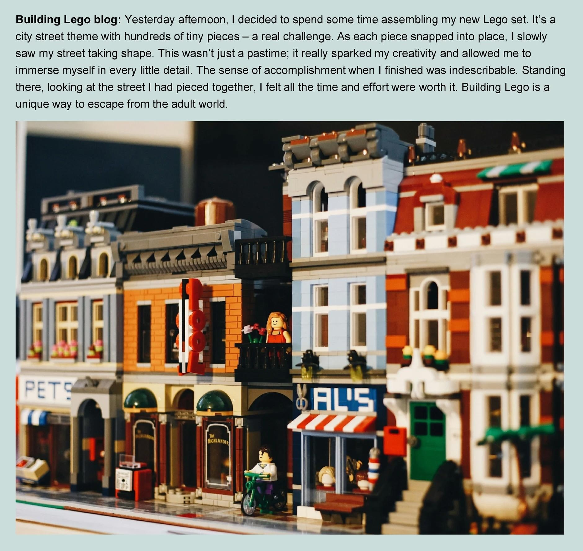 An example showing the Building Lego blog with its corresponding image. From Alphacolor (2017). [White and multicolored building scale mode]. Unsplash. https://unsplash.com/photos/ipmwlGIXzcw.An example showing the Building Lego blog with its corresponding image. From Alphacolor (2017). [White and multicolored building scale mode]. Unsplash. https://unsplash.com/photos/ipmwlGIXzcw.