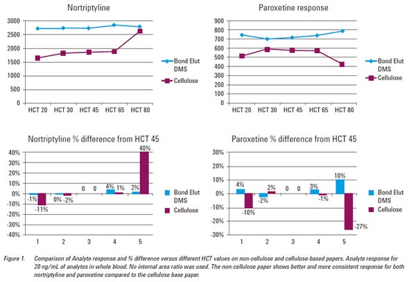 Further cellulose media shows a variability of 50% for hematocrit and paroxetine showed a decrease in the response.