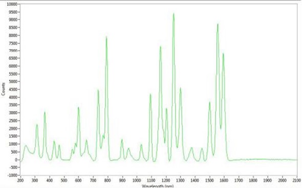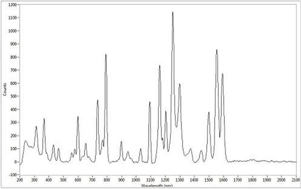 The APOLLO Raman microspectrometer (Figure 1) is specifically designed to determine the Raman scattering from a small amount of sample with high spatial resolution. A range of integration times were utilized and a minimum of 9 scans were averaged. The source of excitation was a 785nm laser and the spectral range of the measurements was 80 to 2100cm-1. Samples were quantified by placing them under the objective and turning on the Raman microspectrometer.