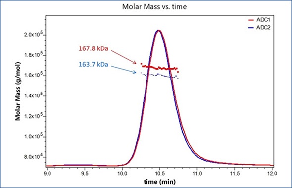 Figure 1. Molar masses for two distinct ADC formulations are determined using SEC-MALS analysis.