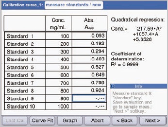 The “Calibration curve” method for evaluation of standards in the BioSpectrometer is activated (Figure 8).